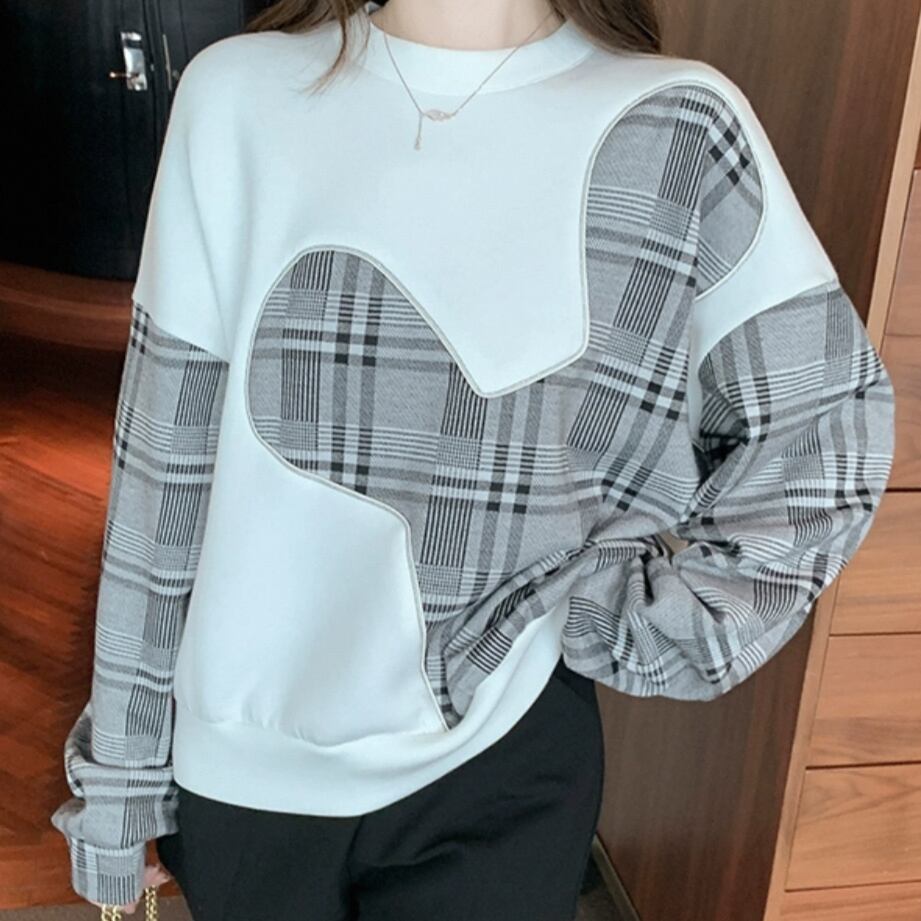 無地とチェック柄の切り替えが可愛いアイテム♡