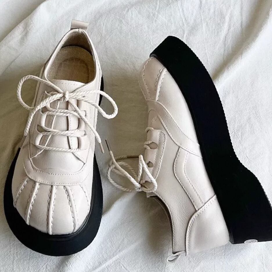 春にピッタリのふんわりカラーの厚底スニーカーです
