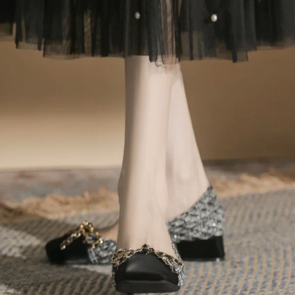 バイカラーのローヒールパンプスです