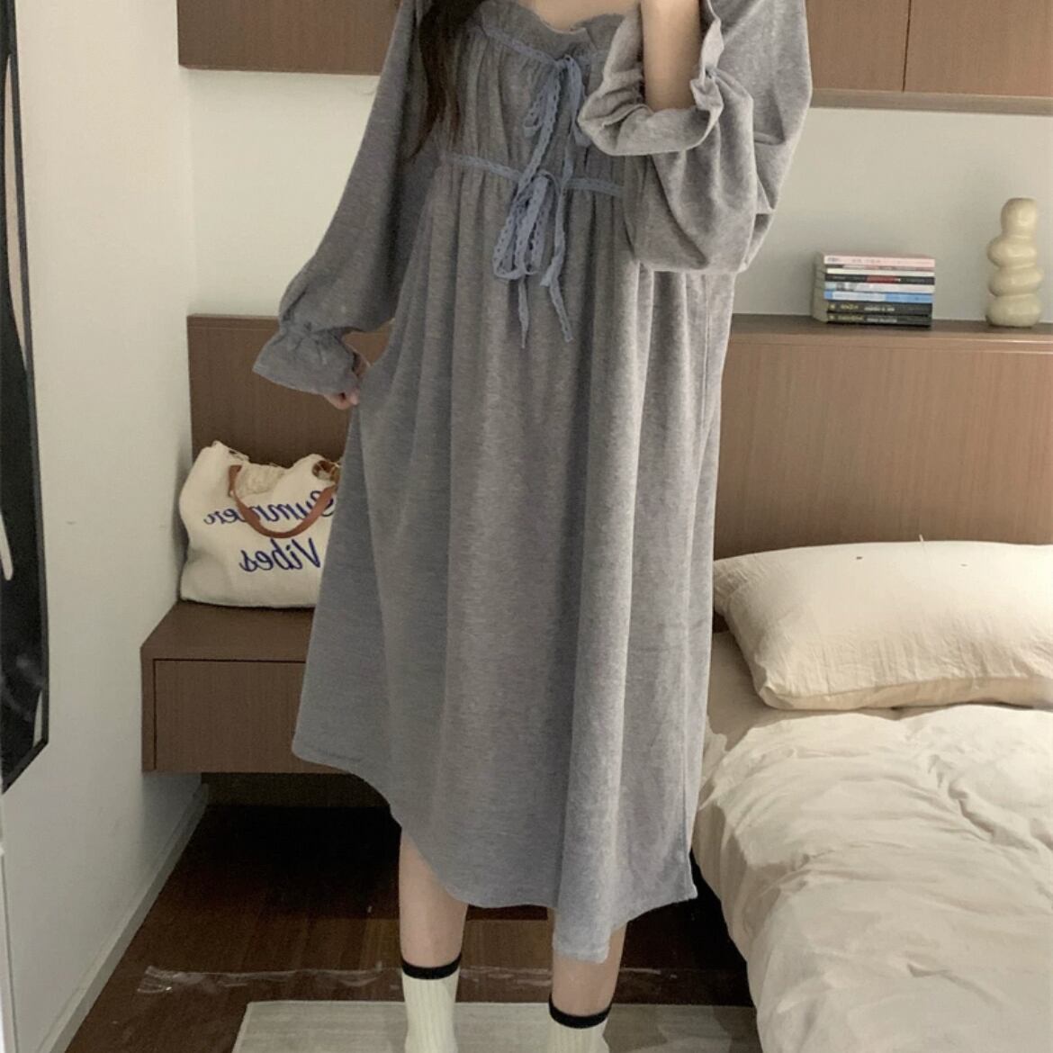 リボン装飾が可愛いワンピースパジャマ