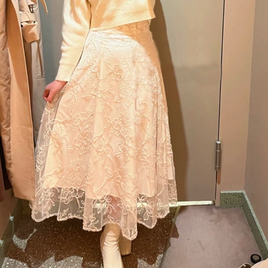 チュール生地部は花柄の刺繍が施されており、凝ったデザイン