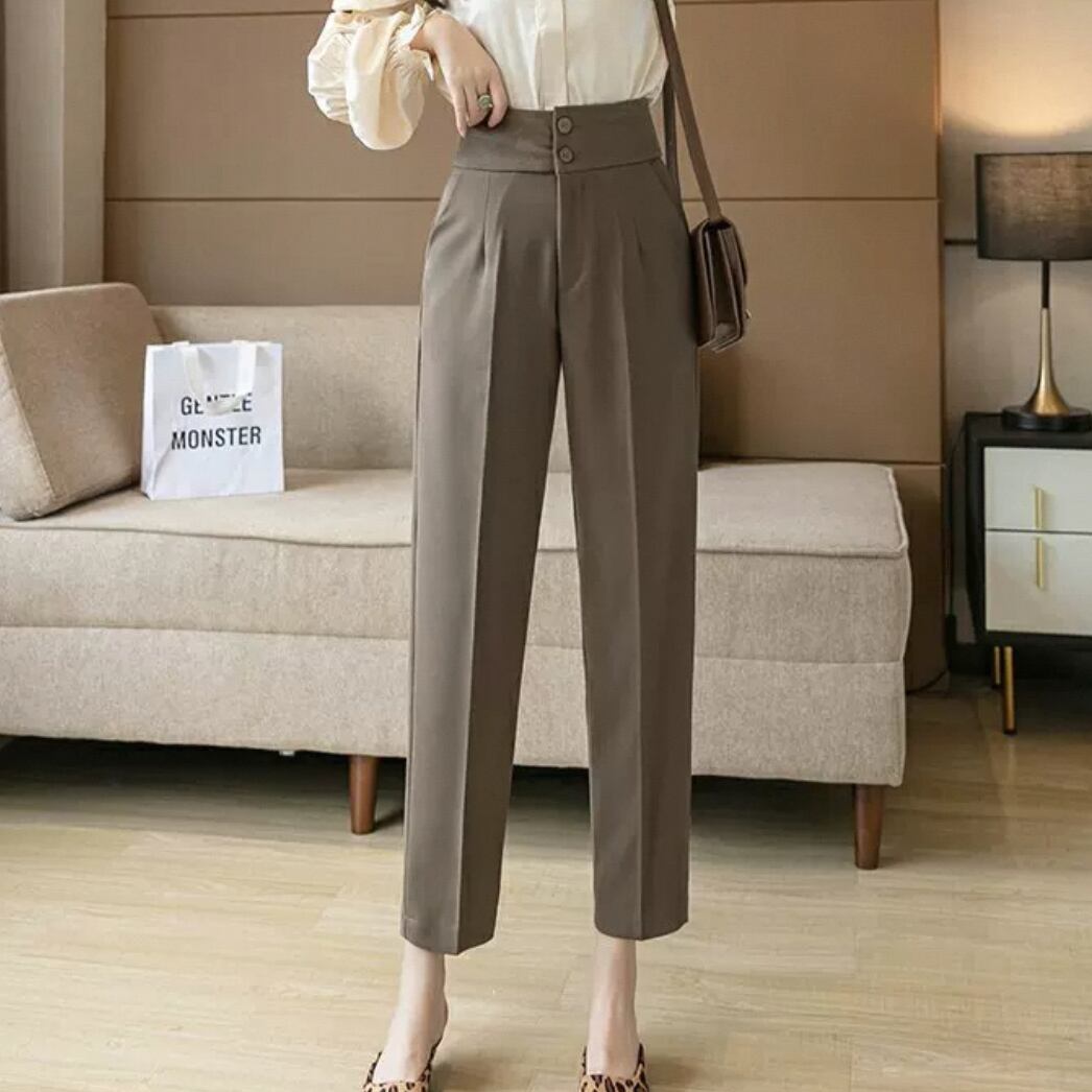 ニュアンスカラーのテーパードパンツです
