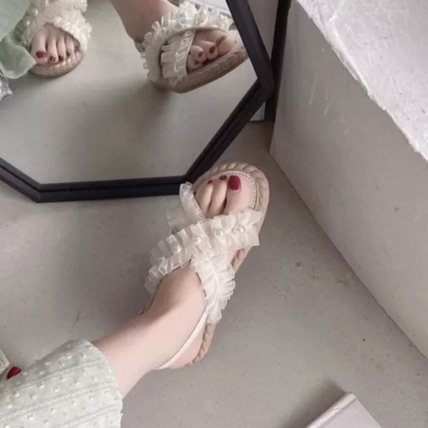 クロスバンドのローヒールサンダルです