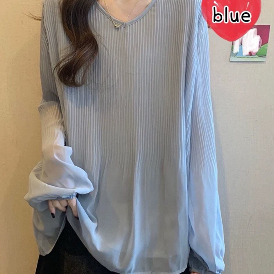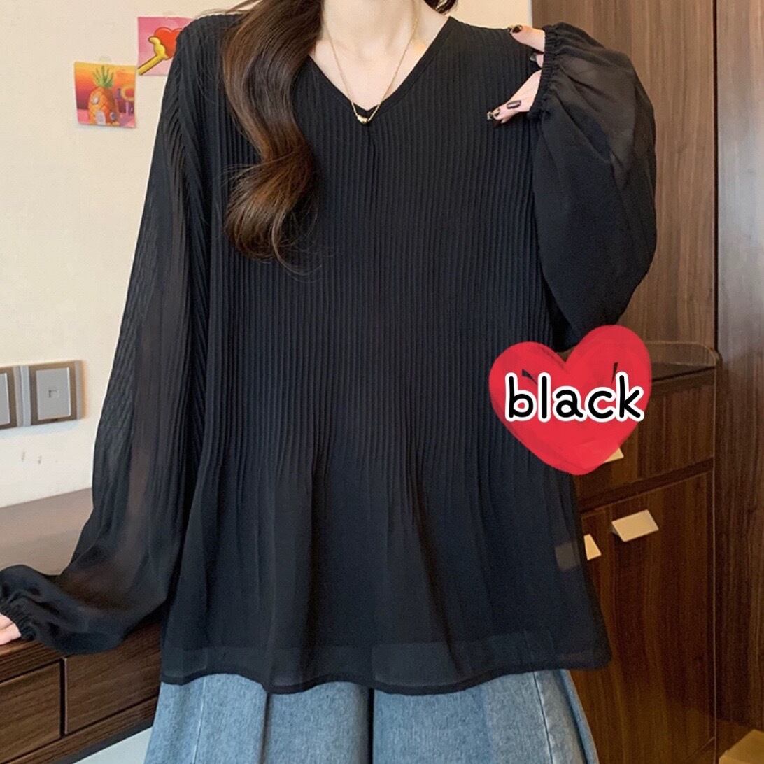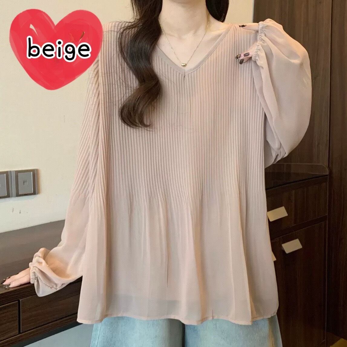 プリーツが可愛いシアーブラウスです