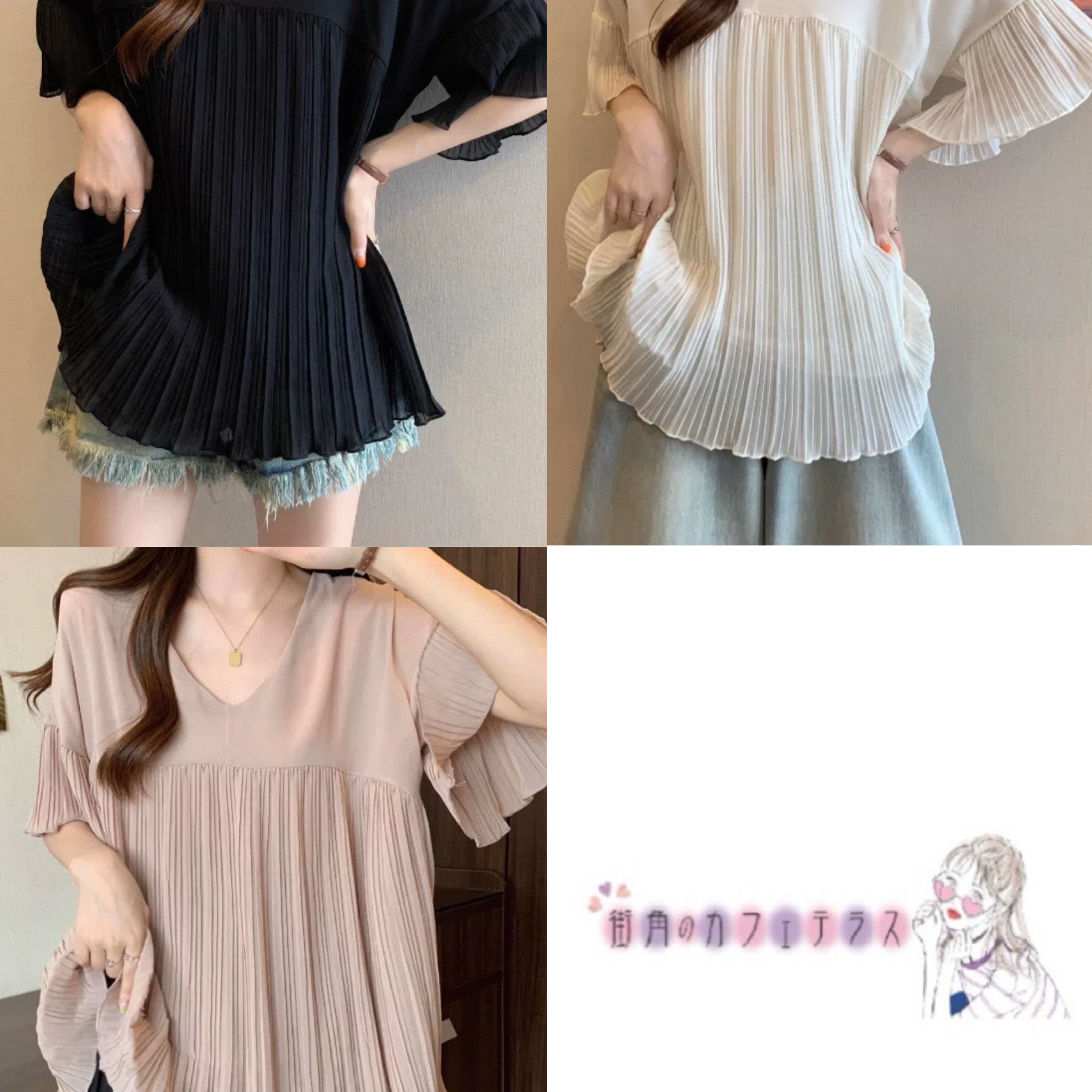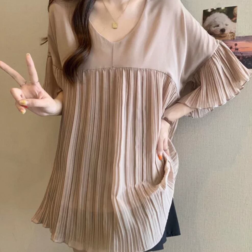 プリーツが可愛いシアーブラウスです