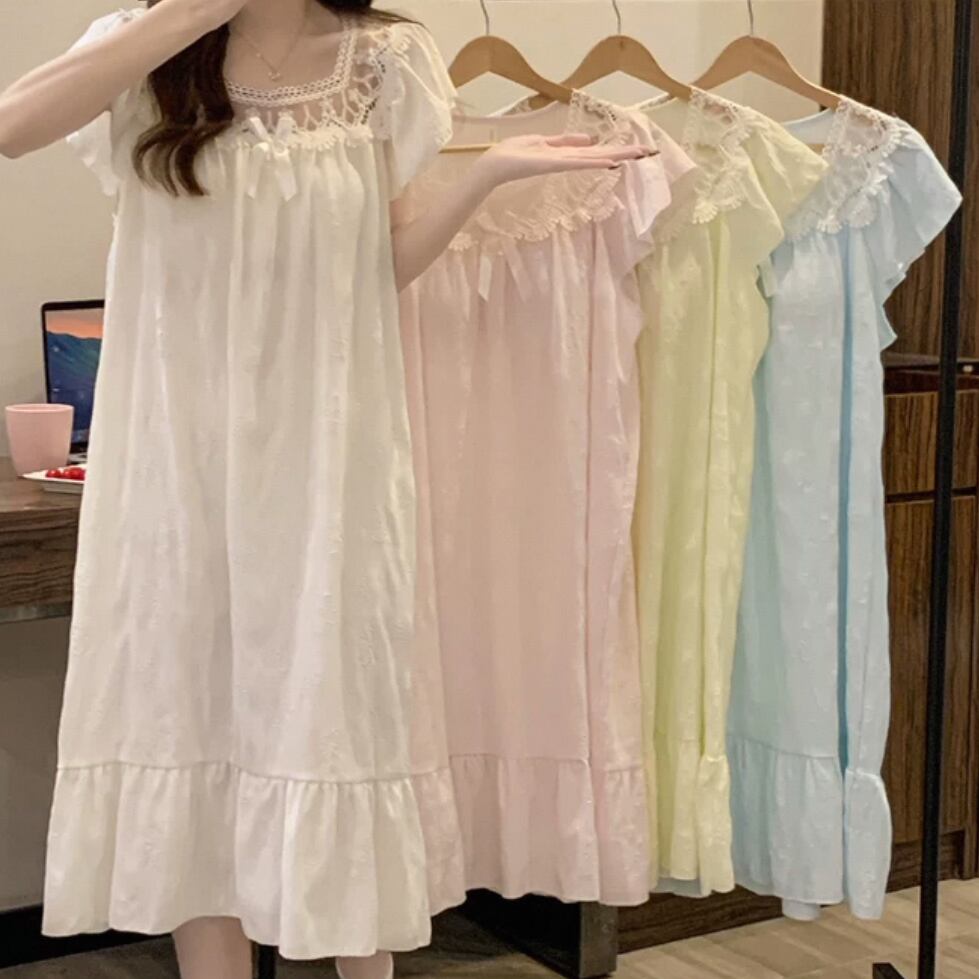 レース装飾が可愛いワンピースパジャマです