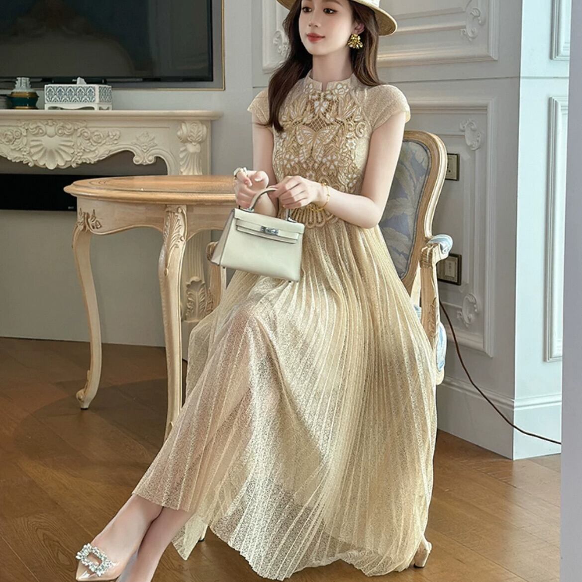 ウエスト付近からプリーツに切り替わっておりスタイルアップ効果も期待できます