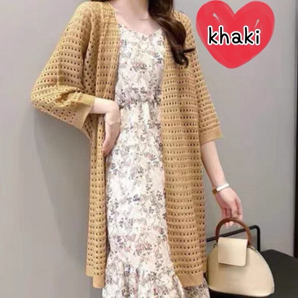かぎ編みニットのロングカーディガンです