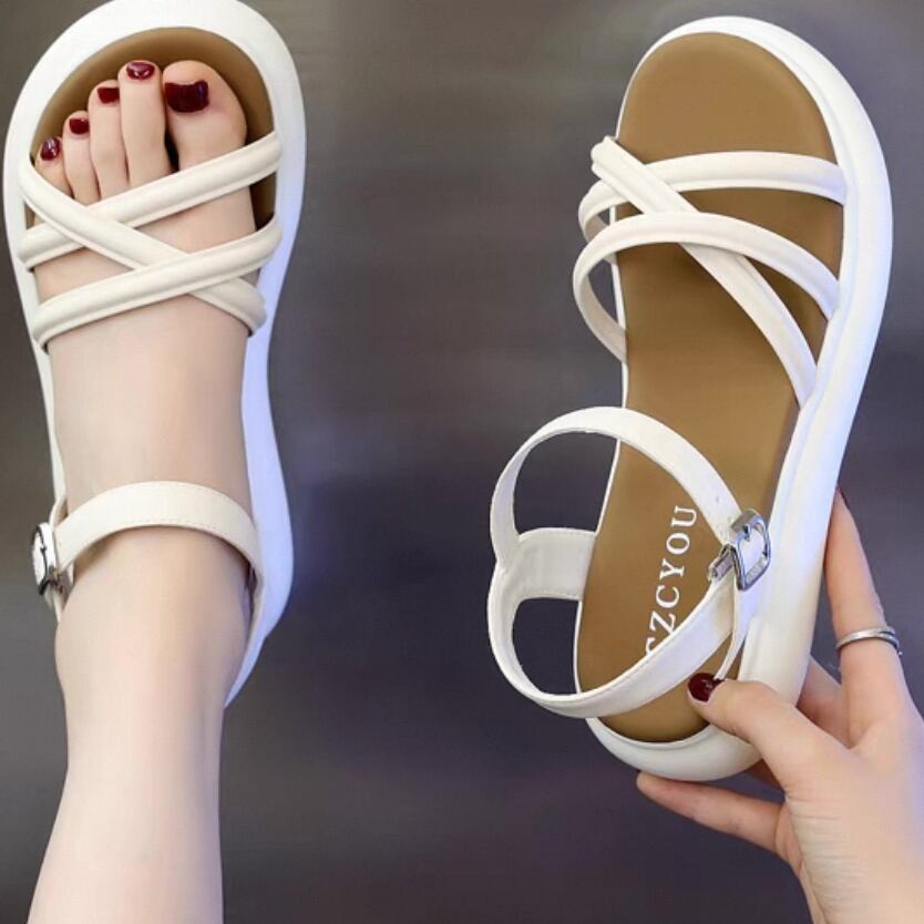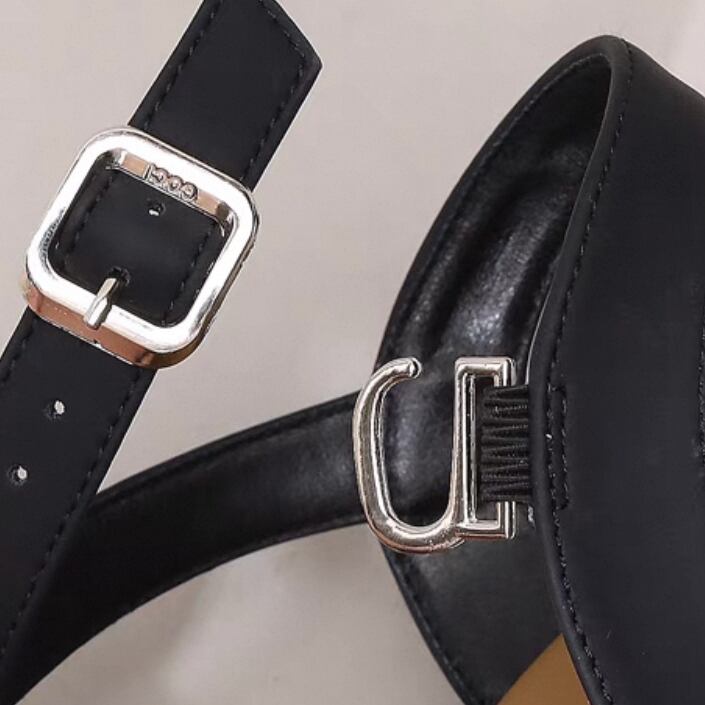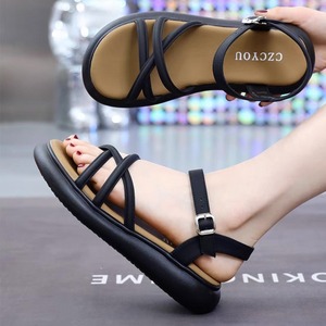 紐バンドデザインのローヒールサンダルです