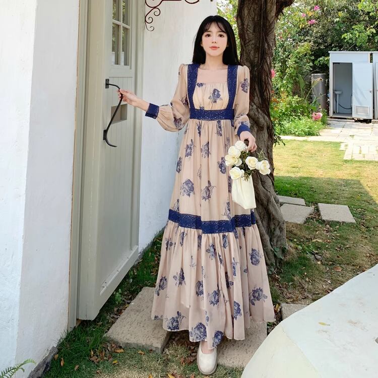レトロ感漂うロングワンピ