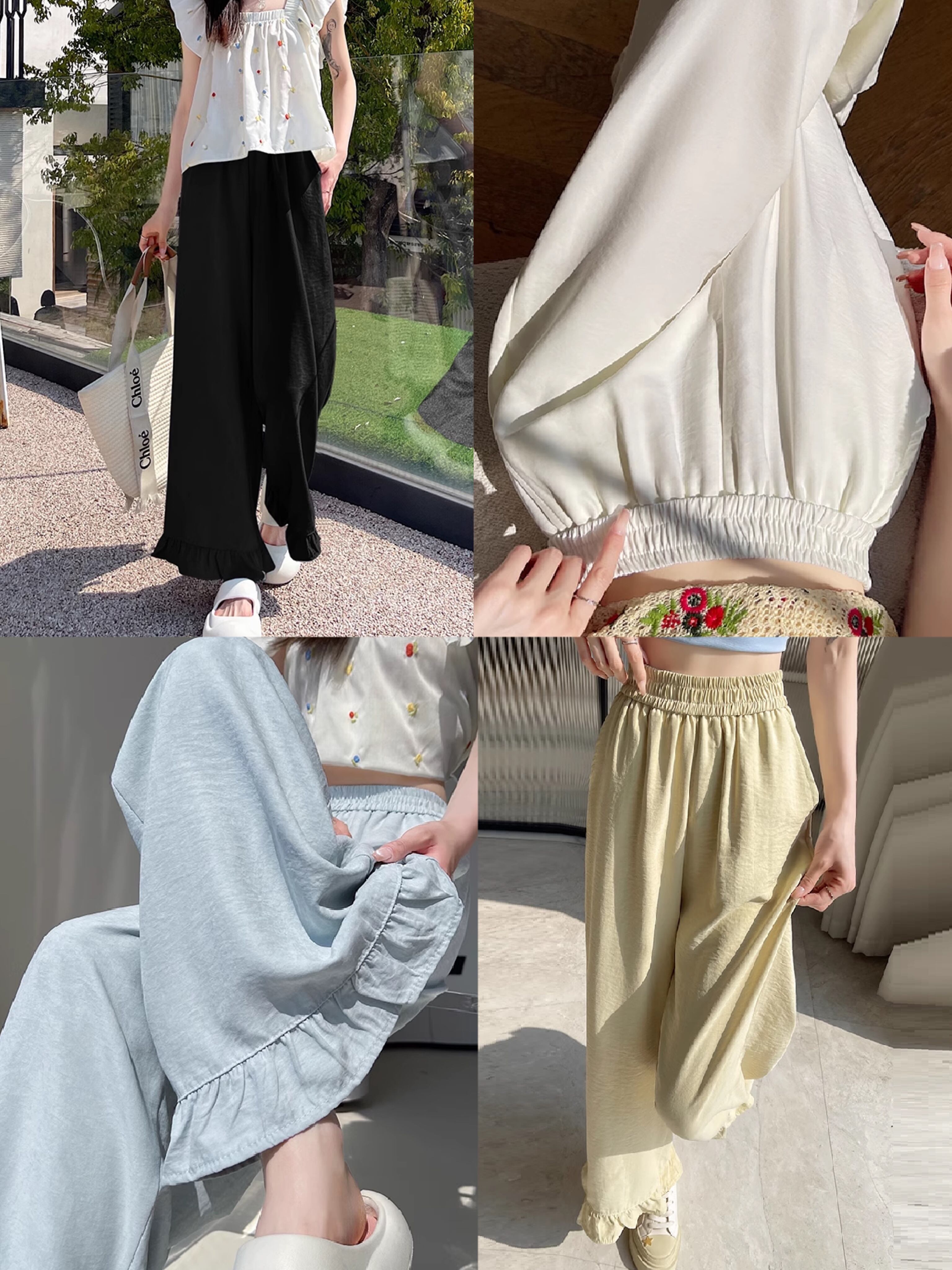 ふんわりとした柔らかみのあるニュアンスカラーのワイドパンツ