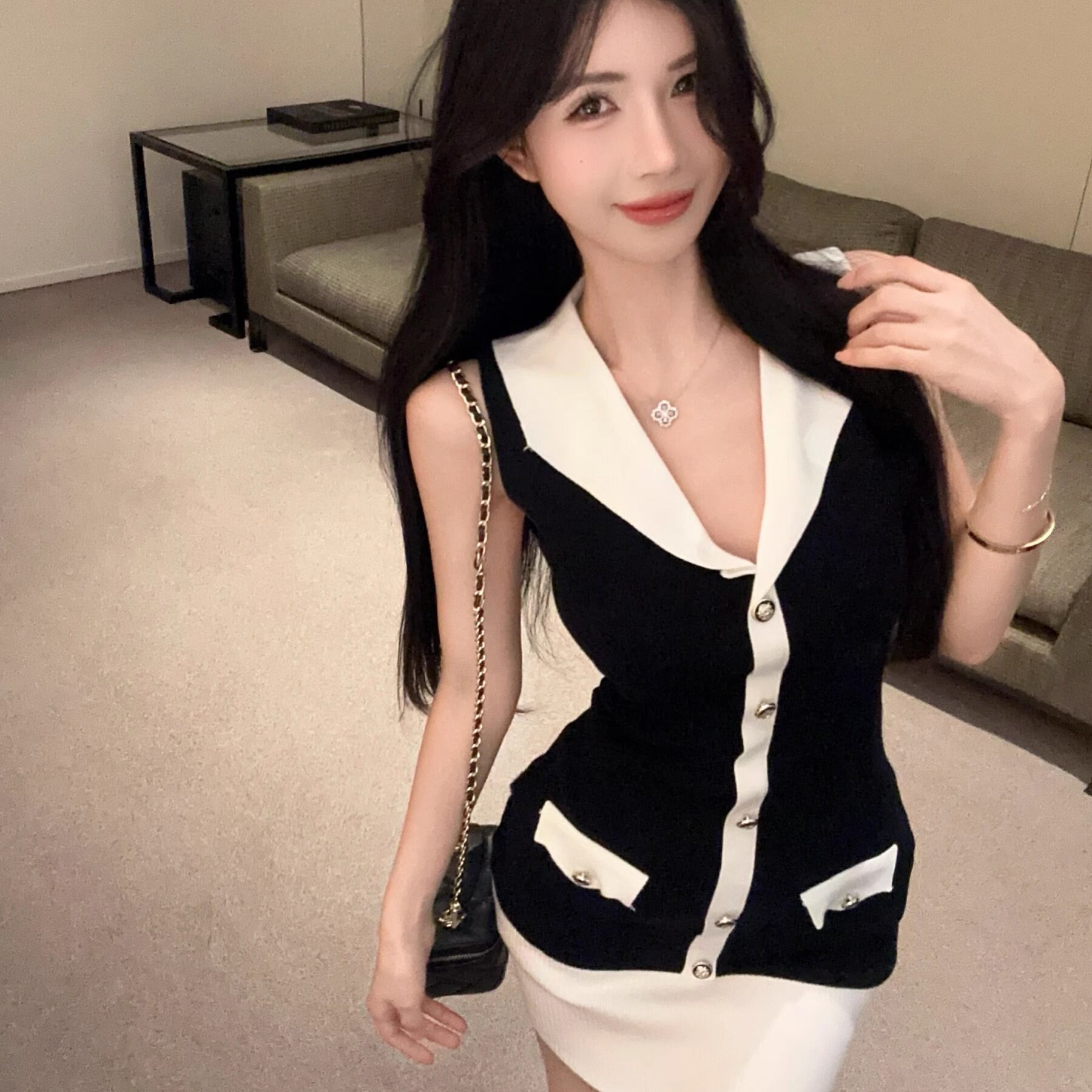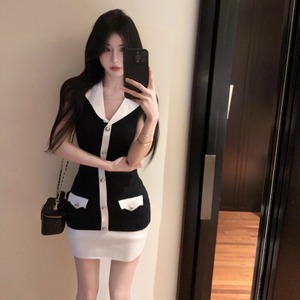 バイカラーのノースリーブドレスです