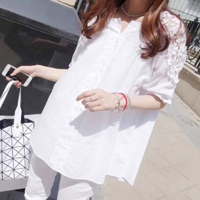 花柄レースとのドッキングが可愛い半袖ブラウス