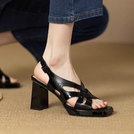 レザー素材のハイヒールサンダルです