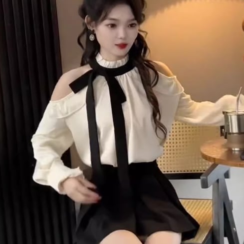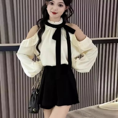 オフショルダーブラウスとミニスカートの2点セット