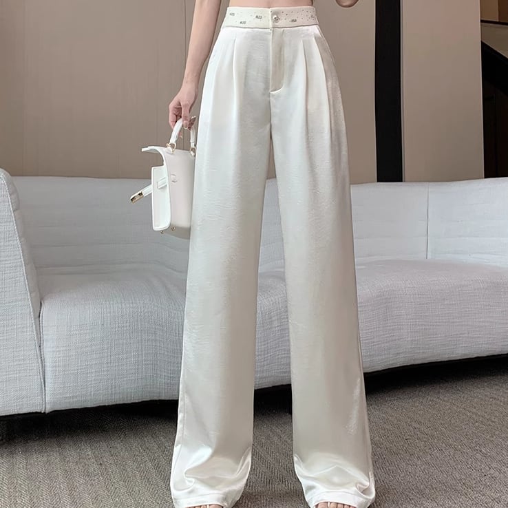 光沢感ある素材のワイドパンツです