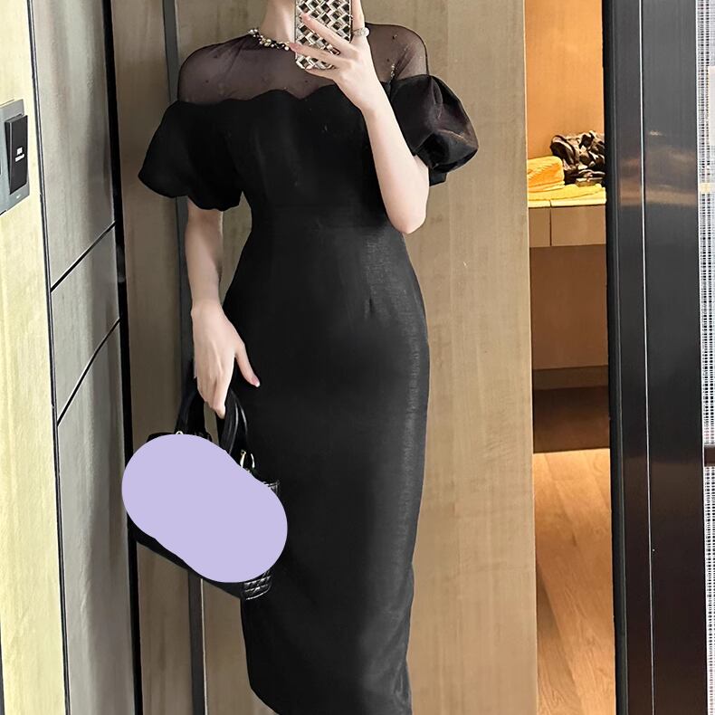 デコルテ・ショルダー部分がシースルー生地になっており、オフショル風の風ファッションを楽しめます