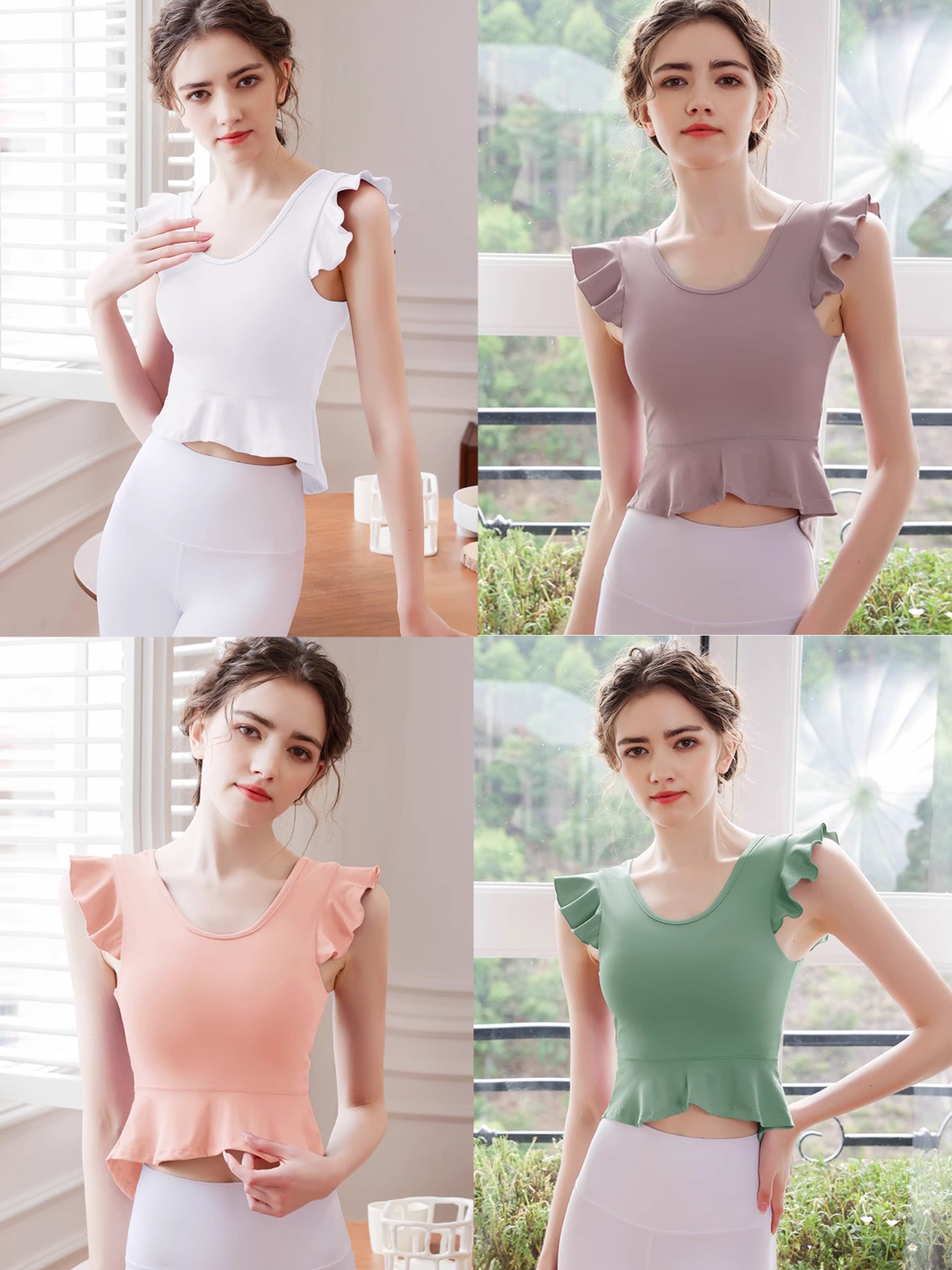 フリルがあしらわれており、シンプルになりがちなスポーティコーデも華やかさをプラス♪