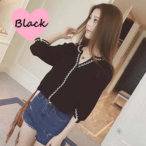 リーフ柄刺繍が目を引く半袖ブラウスです