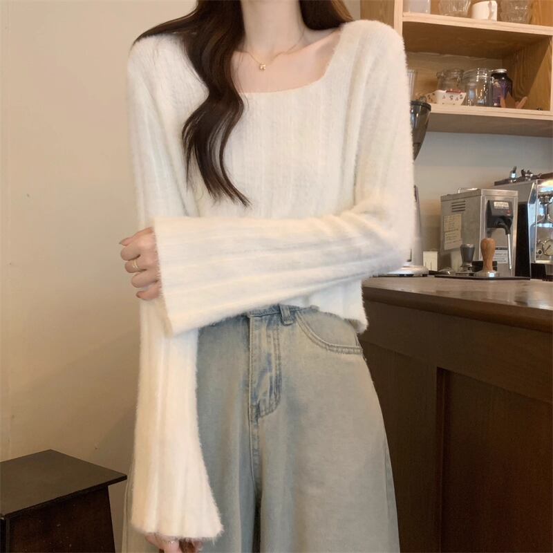 ゆったりとしたシルエットとベルスリーブのデザインが特徴のこのセーターは、リラックスした着心地を実現します。
