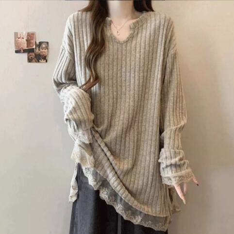 ゆったりとしたロング丈とトレンドのAラインフレアデザインが魅力のこのセーターは、スタイリッシュでありながらもリラックスした着心地を実現します。