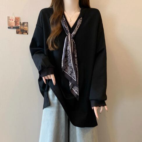 長袖の萌え袖が、カジュアルな印象を与えつつも大人の上品さを引き立てます。