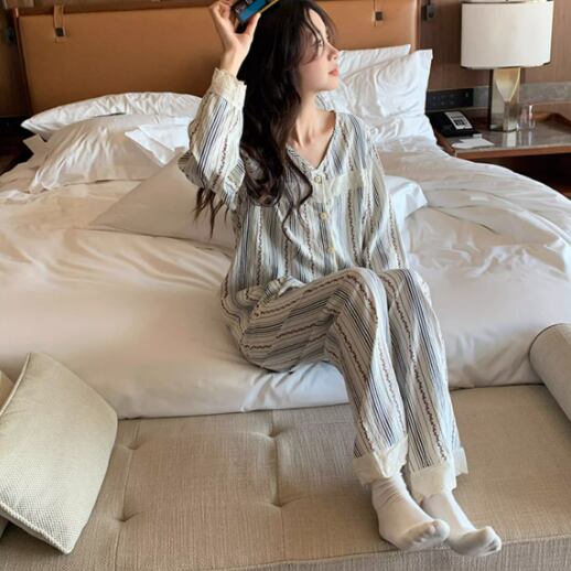 ボタンとレースのディテールが上品さをプラスし、可愛い雰囲気を演出しています。