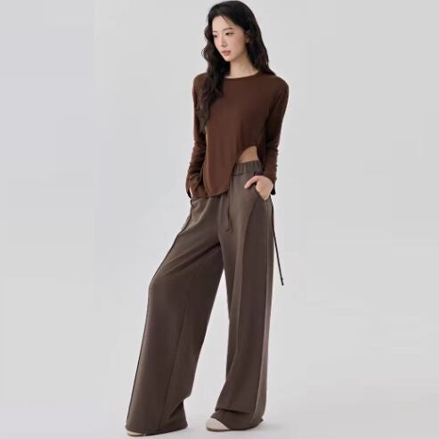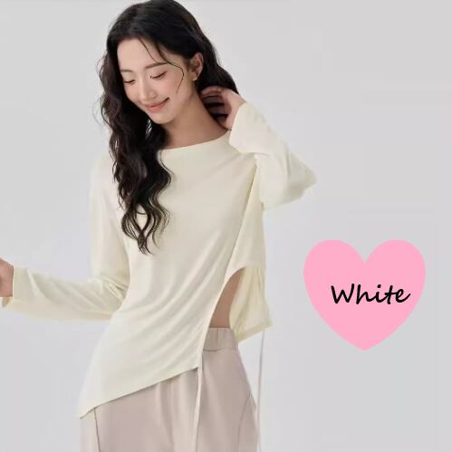 洗練されたデザインのアシンメトリー長袖UネックTシャツです。