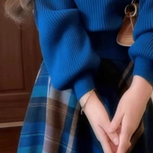 ケーブルニットのハイネックセーターです