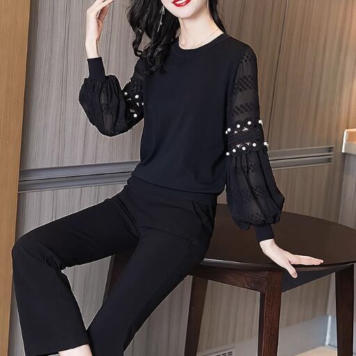 異素材ドッキングのシースルースリーブブラウスです。