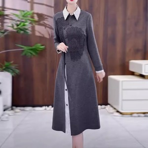 一枚でストライプブラウスとの重ね着風デザインを楽しめます