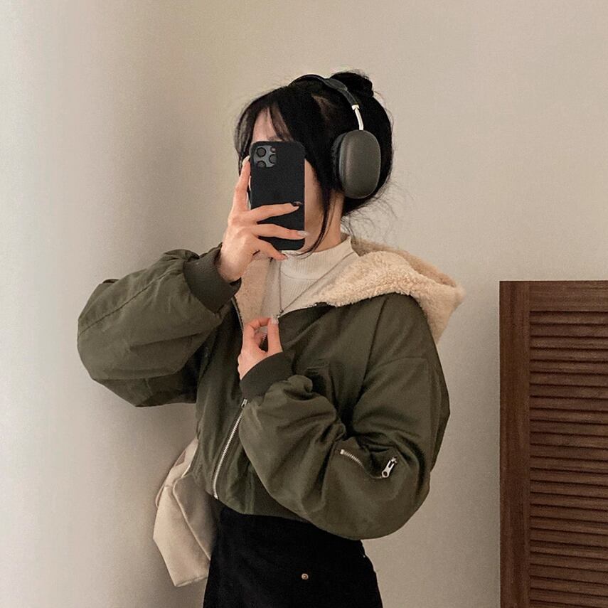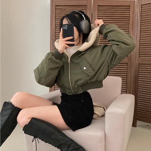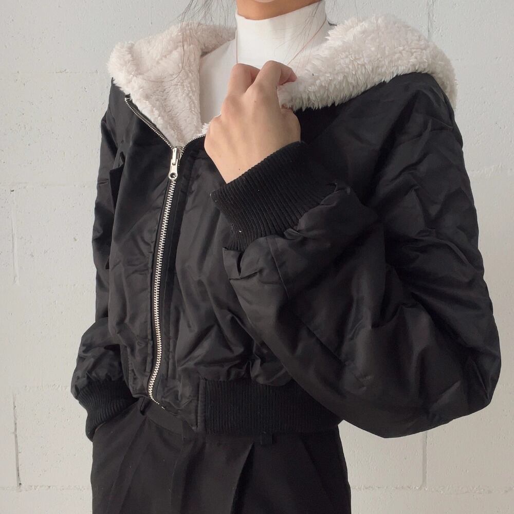 リバーシブル仕様のフード付きのボアジャケットです
