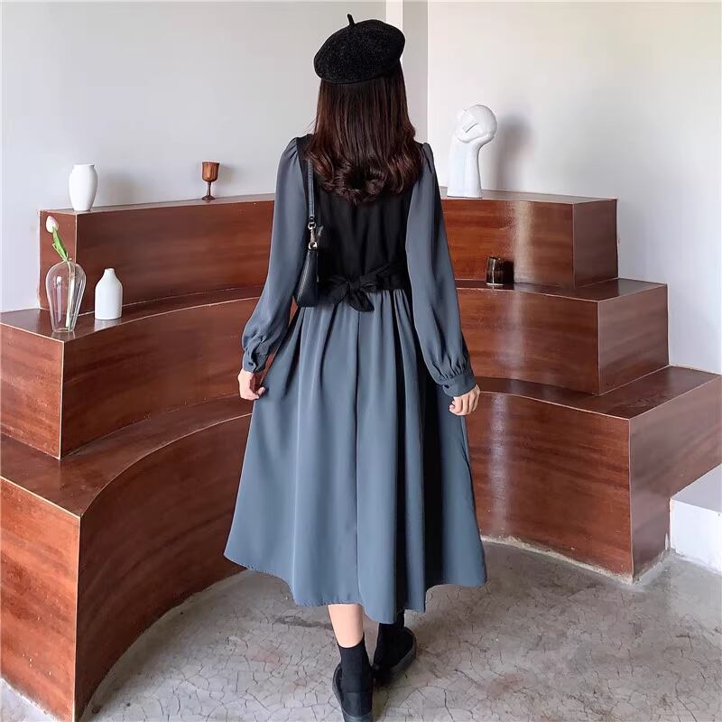 異素材ドッキングのロングドレスです
