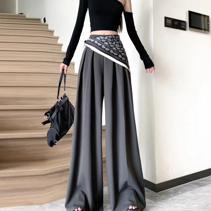 ペイズリー柄スカーフが目を引くワイドパンツです。