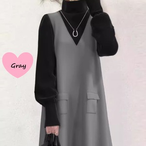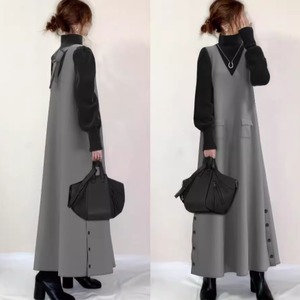 バイカラーのロングワンピースです