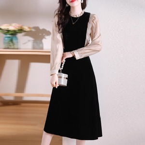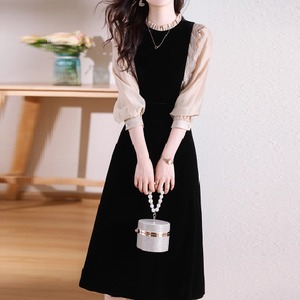 ベロア生地との異素材切り替えワンピ♡