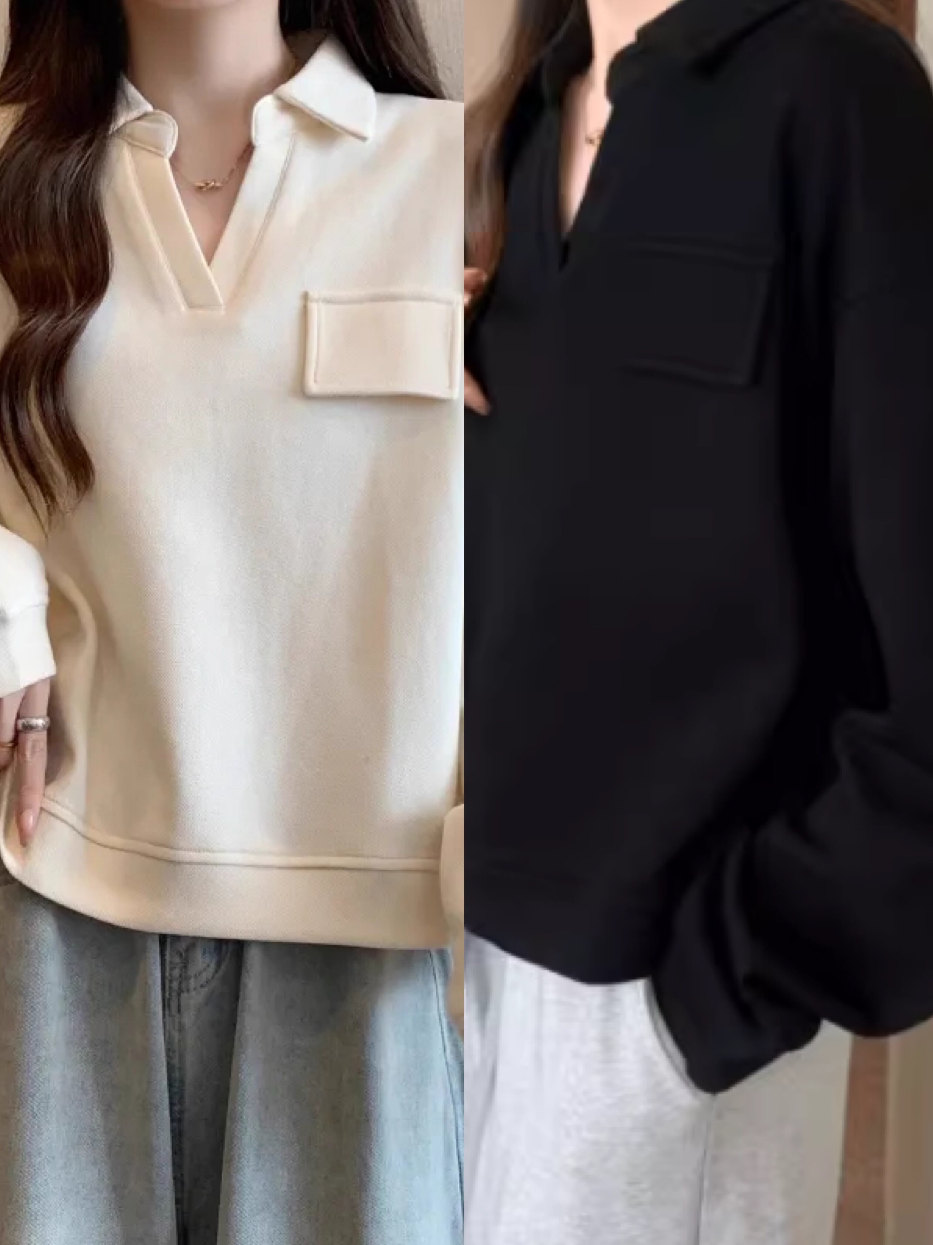 飾らないベーシックなデザインでありつつも、ザックリなVネックやエリがアクセントに♪
