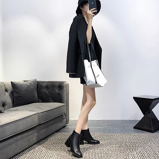 チャンキーヒールのレザーブーツです