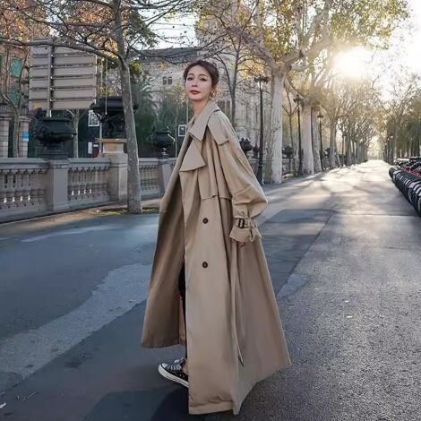 ベルト装飾が目を引くトレンチコートです