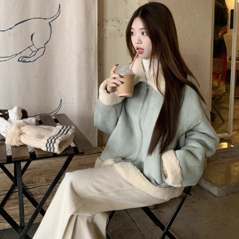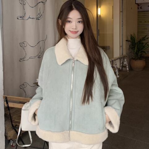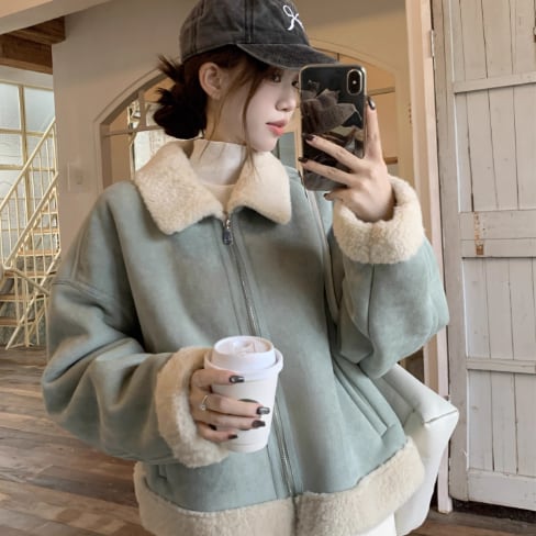 ニュアンスカラーのムートンコートです