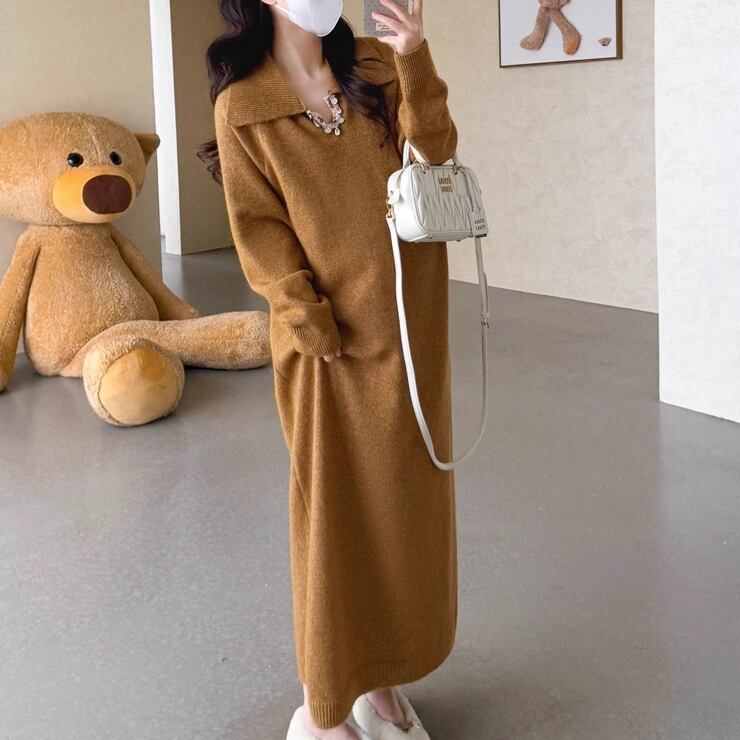 厚手生地のニット素材なので、寒い季節も快適に過ごせる一着です。