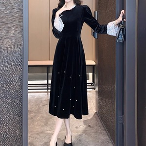 ベルベット素材のワンピースドレス