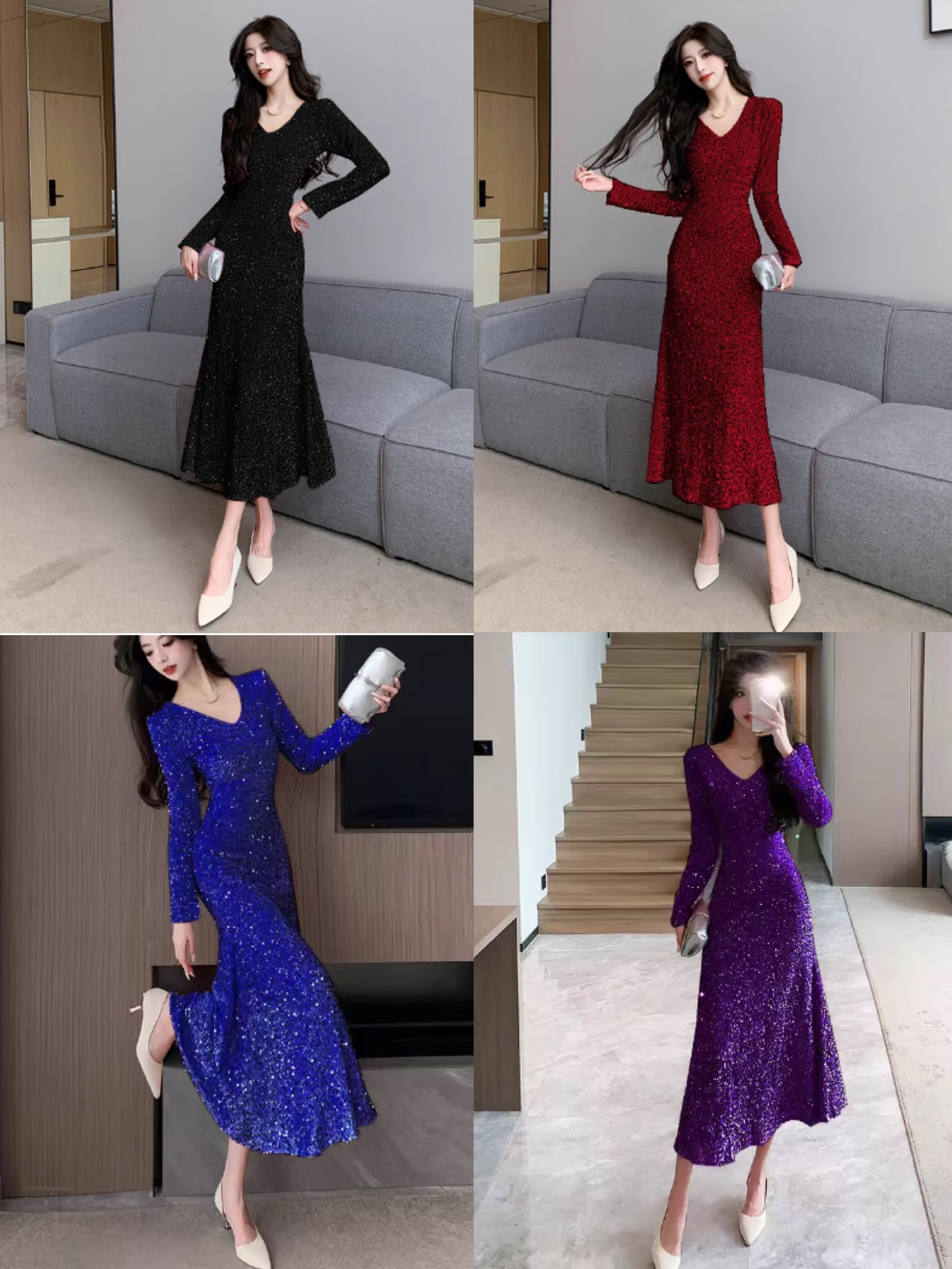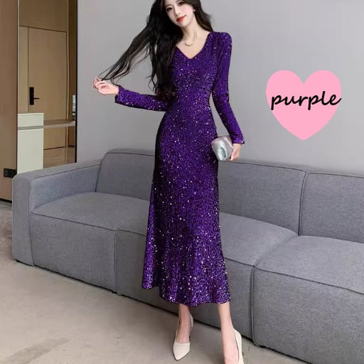 キラキラと輝くスパンコールが魅力のロングドレスです!