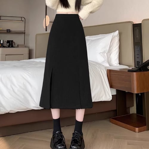 異素材ドッキングのロングスカートです