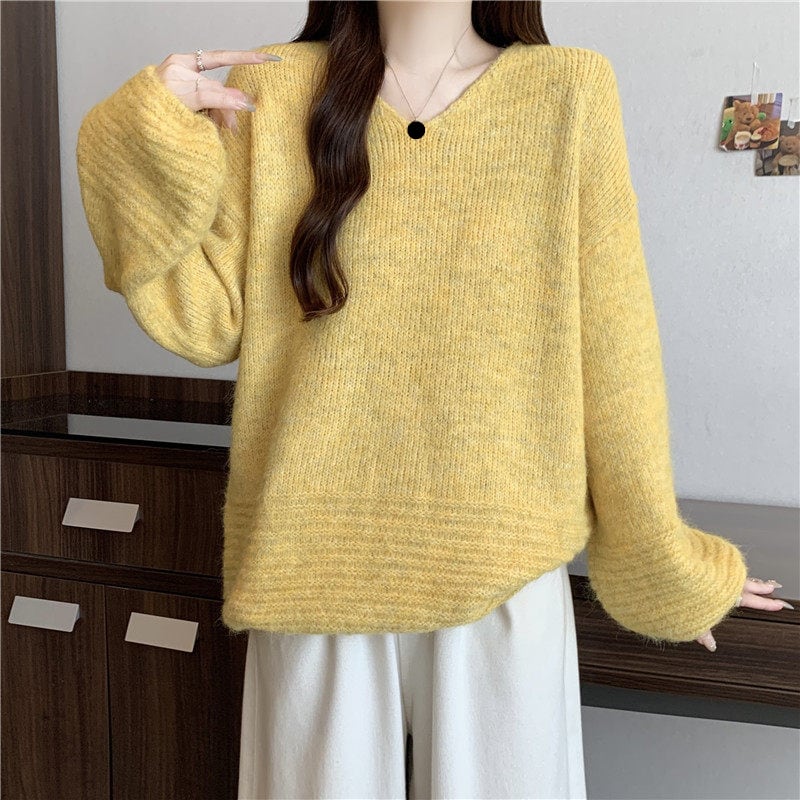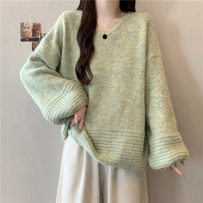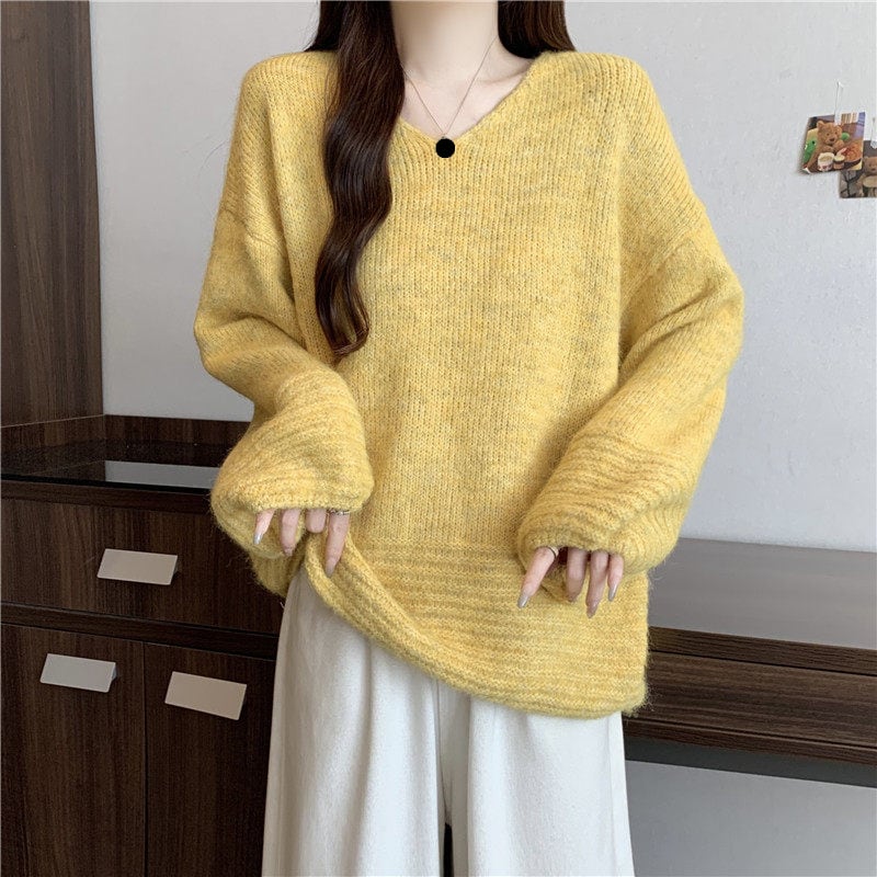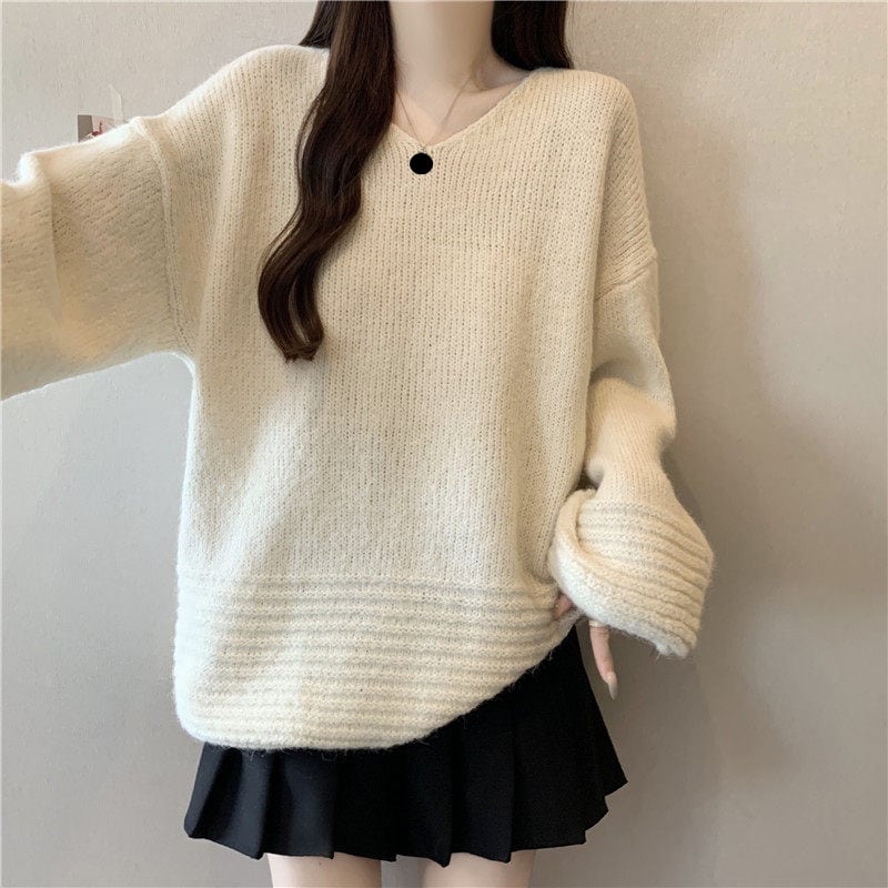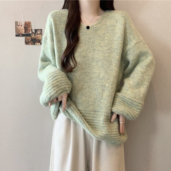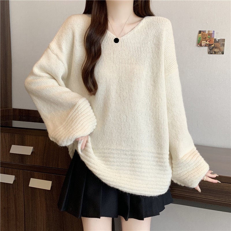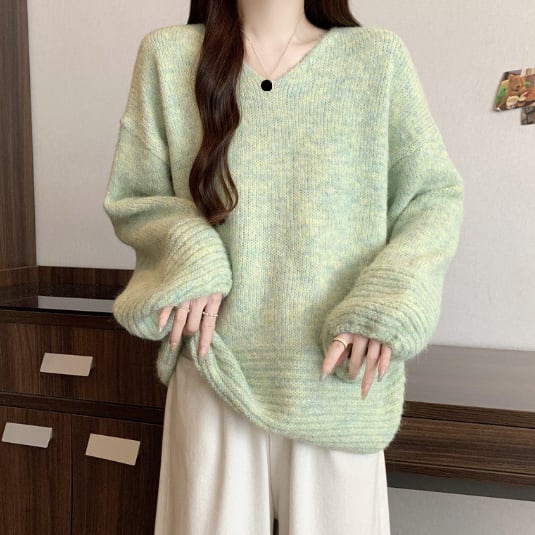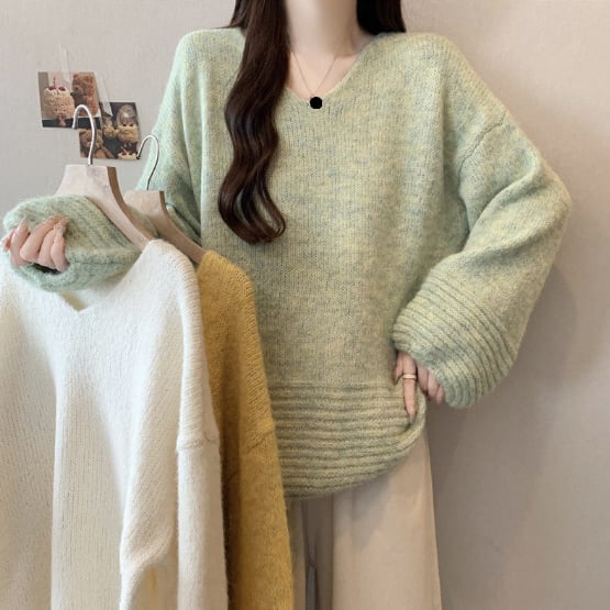 ゆったりフォルムのリブニットセーターです