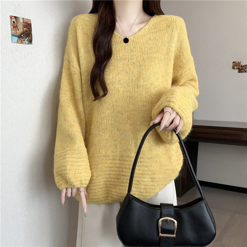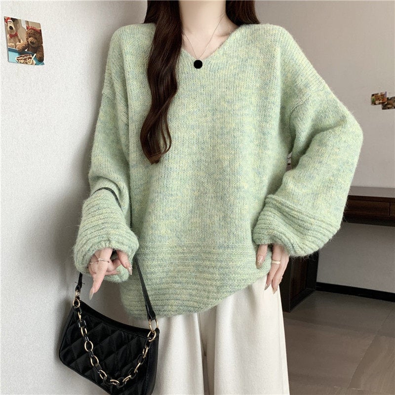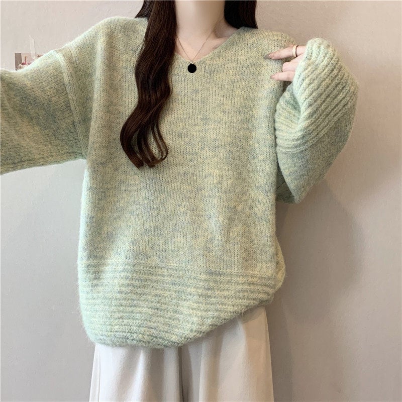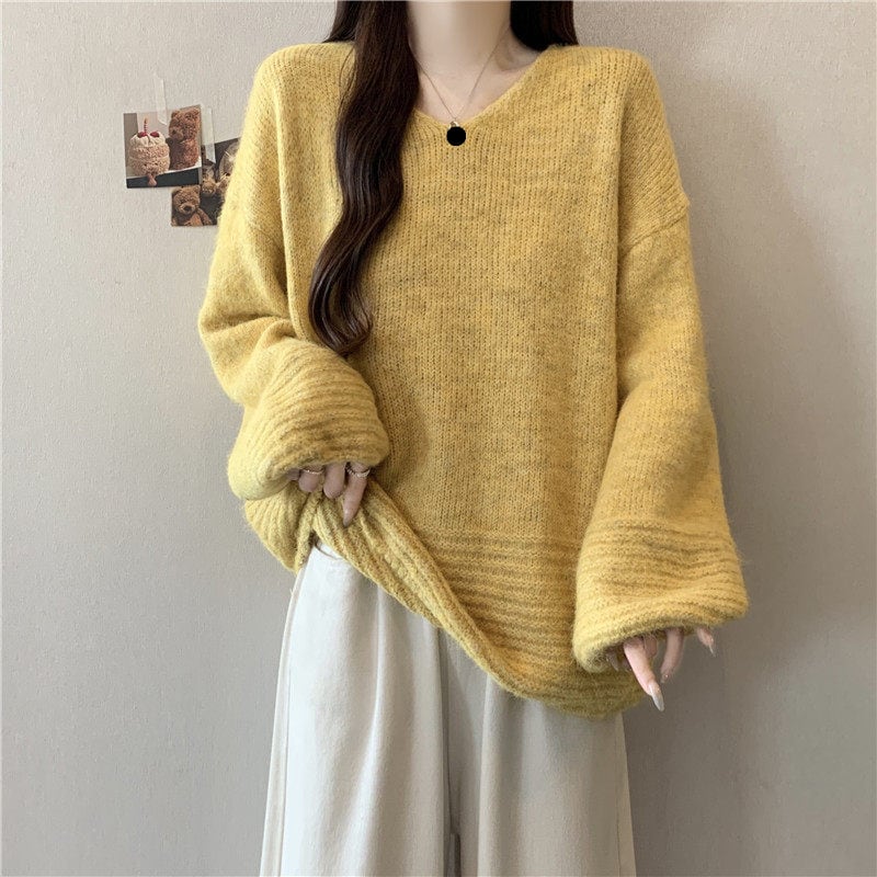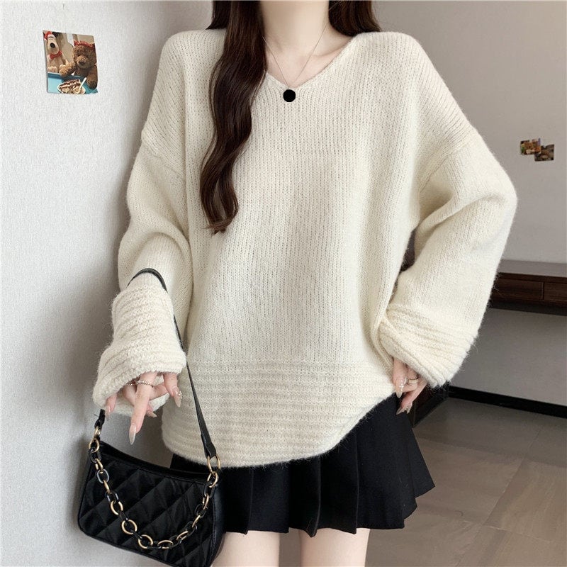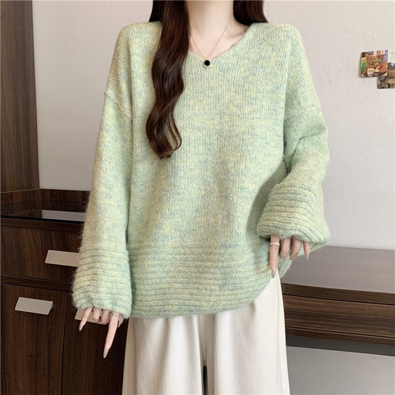 ゆったりフォルムのリブニットセーターです