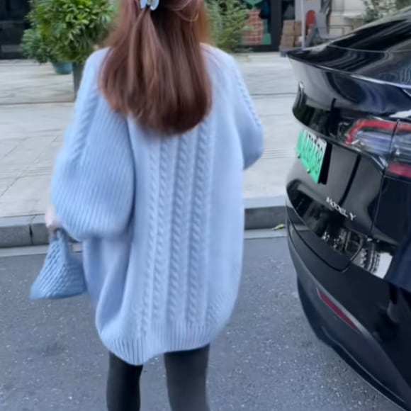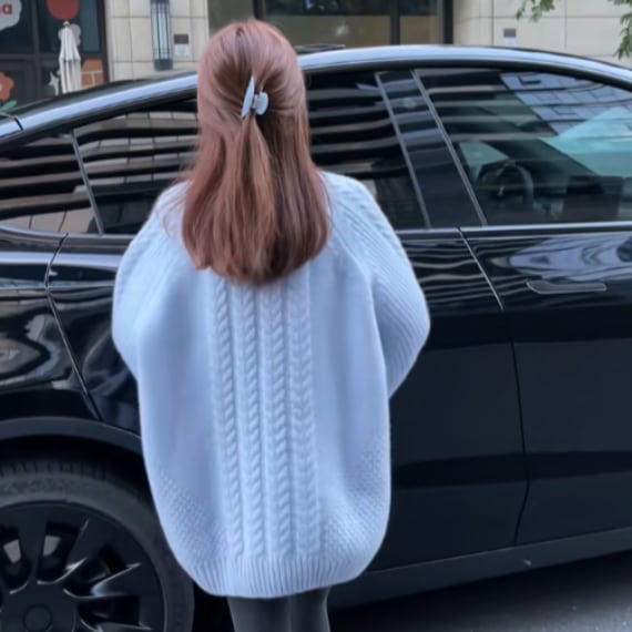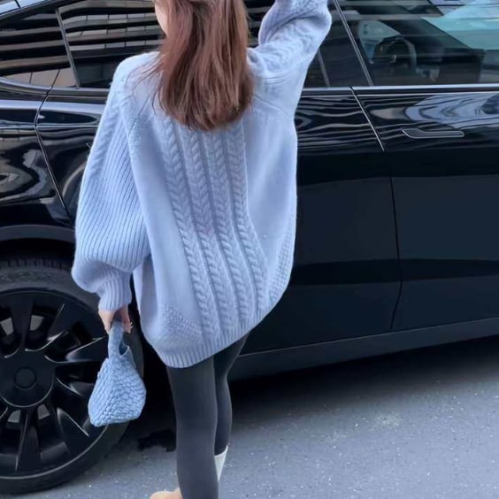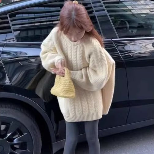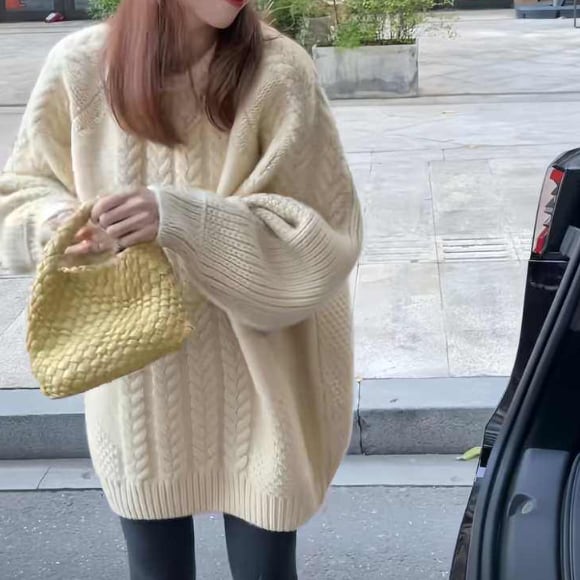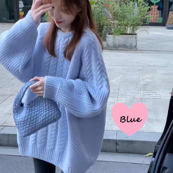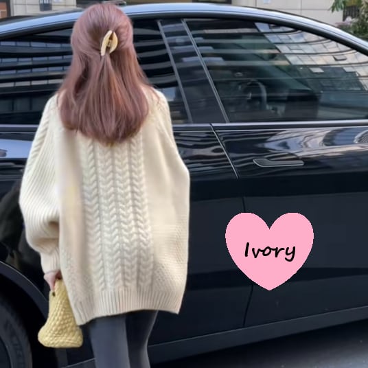 冬の定番、ケーブルニットセーターです