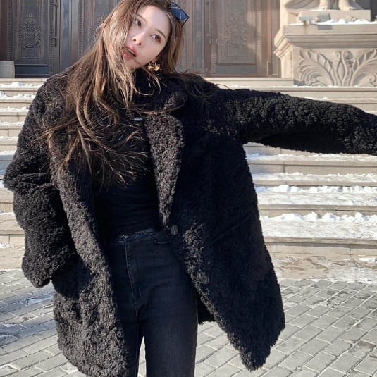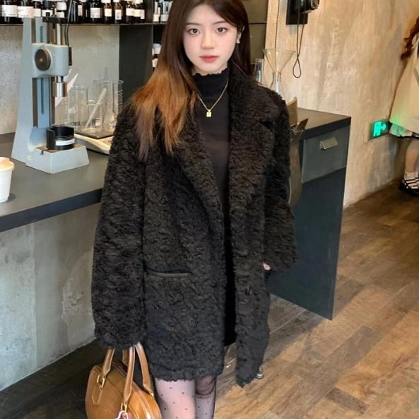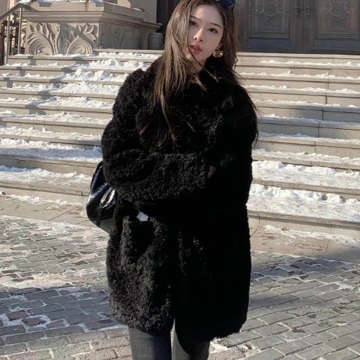 テーラー風の大きめ襟デザインになっており、可愛過ぎない雰囲気♪