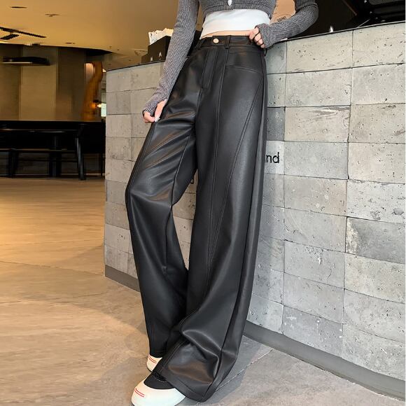 動きやすく、体型カバー効果抜群のレザーパンツです!