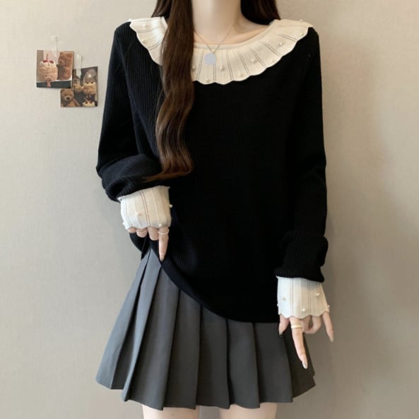 襟・袖口にパール装飾が施されており、上品で華やかな雰囲気♡